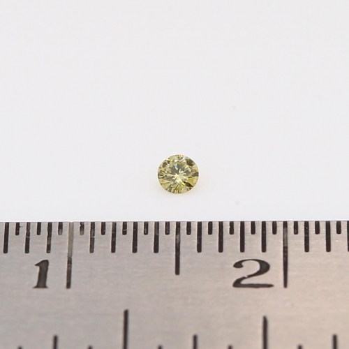 Featuring lime and golden tones, this 0.03 carat fancy green diamond has a brilliant round-cut with an SI clarity. A natural wonder that would complement any setting.