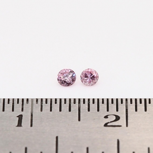 With a brilliant round-cut and accompanied by their own Argyle Lot Number for complete authenticity, this 0.06 total carat pair of fancy intense purplish pink Argyle pink diamonds are the perfect stones to add a hint of pink sparkle to your collection or a stunning pair of studs. This product contains Argyle pink diamonds ranging from 5PP to 5P under the previous Argyle grading system.