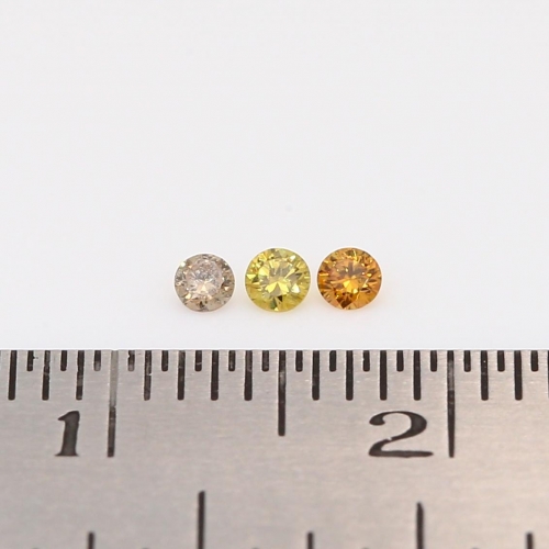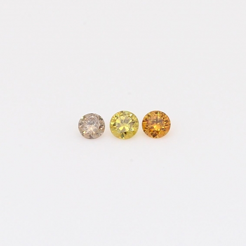 This vibrant and fresh trio features 0.09 total carat of natural-coloured sparkle! It includes a 0.03 carat round-cut fancy orange diamond, a 0.03 carat round-cut fancy green diamond and a 0.03 carat round-cut C6/7 diamond. This trio of fine diamonds is perfect for a one-of-a-kind custom design.