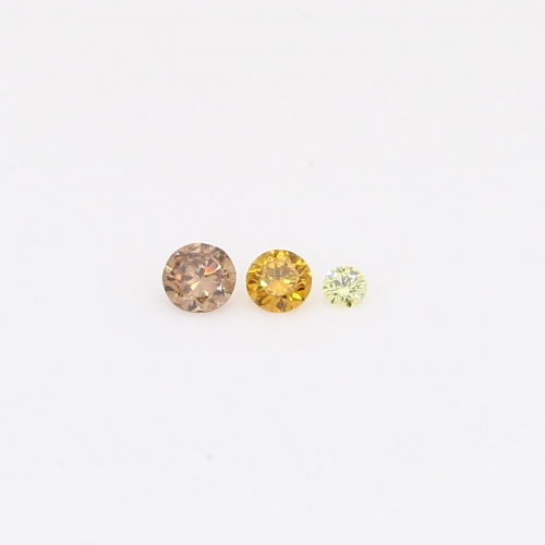 This vibrant and fresh trio features 0.095 total carat of natural-coloured sparkle! It includes a 0.035 carat round-cut fancy intense orange diamond, a 0.01 carat round-cut fancy yellow diamond and a 0.05 carat round-cut C6/7 diamond. This trio of fine diamonds is perfect for a one-of-a-kind custom design.