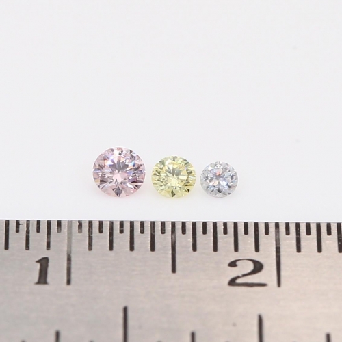 0.125 Total carat trio of round-cut rainbow diamonds