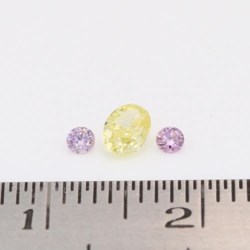 0.29 Total carat trio of round-cut purple and oval-cut fancy light yellow diamonds