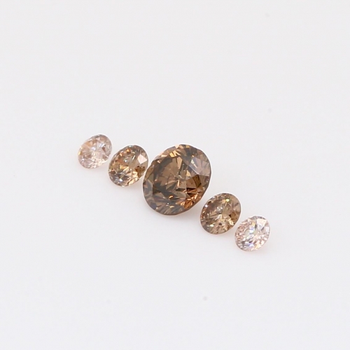Rich in amber and warm, romantic hues, this 0.33 total carat parcel features a 0.08 carat round-cut C6/7 champagne diamond at its centre, flanked by two C6/7 champagne diamonds and two IPC Argyle diamonds. Accompanied by an Argyle Lot Number, it offers complete authenticity, making it perfect for a custom ring or pendant.