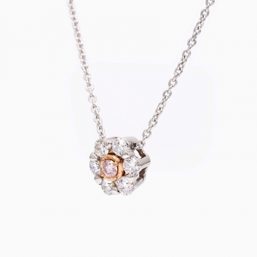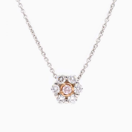 Adeline white and Argyle pink diamond floral halo necklace