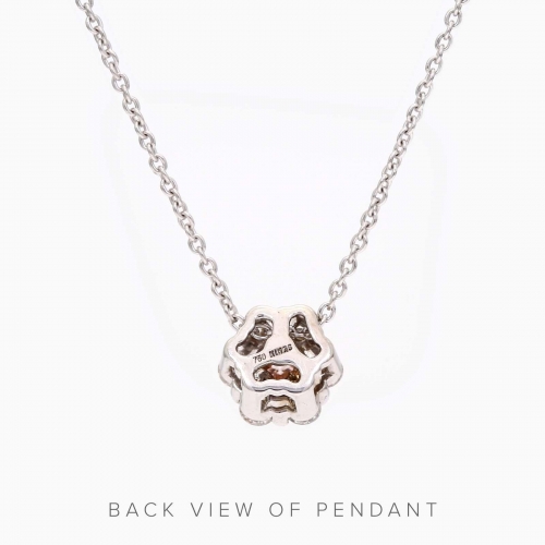 Crafted from 18 karat white and rose gold, this contemporary cluster of classic sparkle is designed to enhance a truly rare treasure - an 8-9P Argyle pink diamond. Framed by 0.30 carat of fine white diamond set in a floral halo and hung on a white gold chain, the Adeline pink diamond necklace is the premium way to sparkle all day.