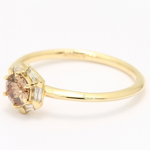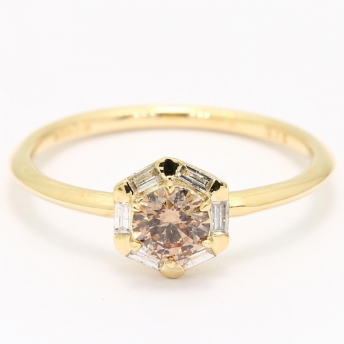 Aroma champagne and white diamond hexagonal halo ring