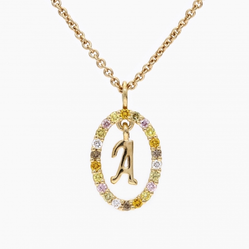 Crafted from warm 9 karat yellow gold, the Autograph initial A necklace is a rainbow upgrade to the popular personalised necklace. Featuring a high-shine A suspended in a kaleidoscopic halo of coloured diamonds, including an Argyle pink diamond, this is the perfect gift for anyone with a special A in their life!