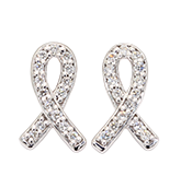 Each stud features fifteen hand-selected white diamonds that encrust the White Ribbon logo.