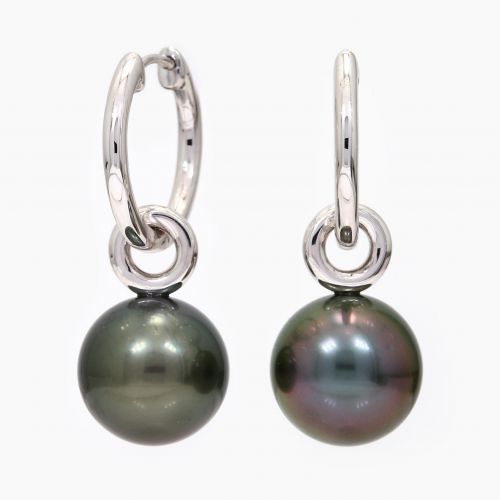 Versatile and timeless, these detachable pearl earrings are the perfect way to add a lovely finishing touch to every ensemble. The 8-9mm black Tahitian pearls can be converted into a classic pair of sterling silver huggies in a matter of seconds. The Caledonia black Tahitian pearl huggie earrings make the perfect gift for yourself or another.