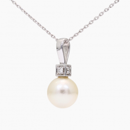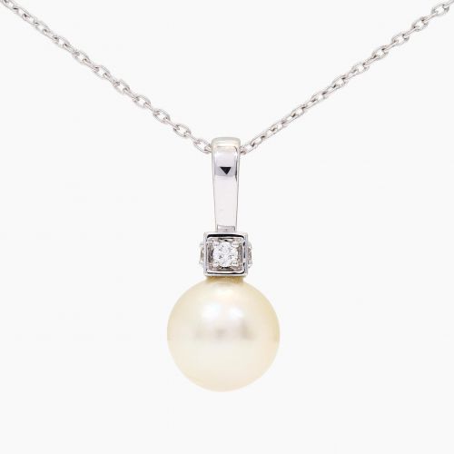 The Corsica necklace boasts a lustrous 8-9mm white South Sea Pearl anchored to a three-dimensional, diamond-encrusted cube. Crafted from sterling silver, the geometric design offers a unique point of difference, making this a modern version of a classic pearl necklace.