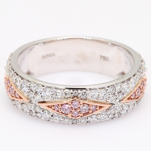 Crafted from 9 karat white and rose gold, the Evia is a stunning diamond dress ring designed to add dramatic sparkle to every day. Set with twelve 6-7P/PP Lot Numbered Argyle pink diamonds and a further 74 white diamonds totalling 0.74 carat, this classic dress band is inspired by the bandeau tiaras worn by royalty.