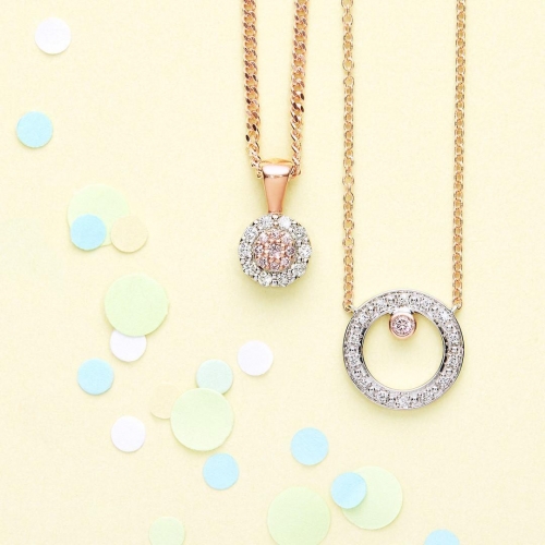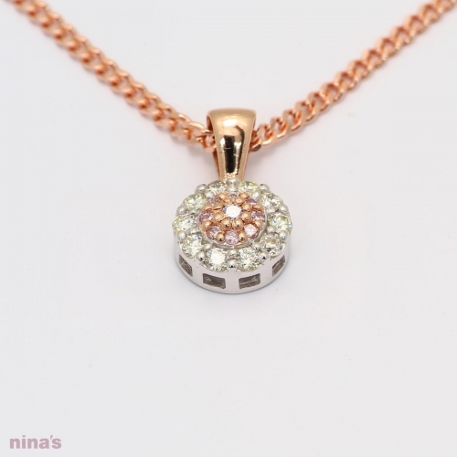 This two tone diamond pendant features 9 rare Argyle pink diamonds set in rose gold, surrounded by a halo of white diamonds in contrasting white gold. Suiting either a rose or white gold chain, the Geranium Pink Diamond Halo Pendant is premium coloured sparkle - and don't forget their matching earrings!