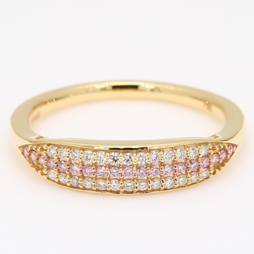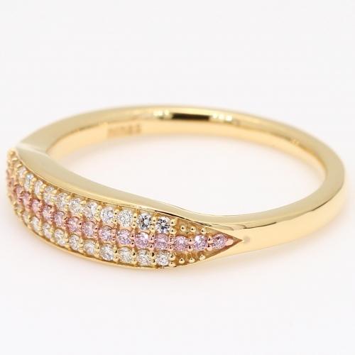 Crafted from 18 karat yellow and rose gold, this stackable ring dazzles with nineteen 6-7P Argyle pink diamonds, accompanied by an Argyle Lot Number for complete authenticity, nestled in rose gold claws and accented by twenty six fine white diamonds. A fusion of modern design and expert craftsmanship, the Hex diamond ring shines beautifully on its own or stacked for a bold sparkle statement.