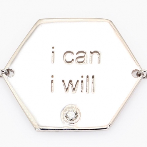 The I Can affirmation medallion bracelet is a modern staple with a petite white diamond sparkle. Crafted from sterling silver and designed with an adjustable clasp for a perfect fit, the chain is 17-18cm long, making it the perfect gift for any occasion.
