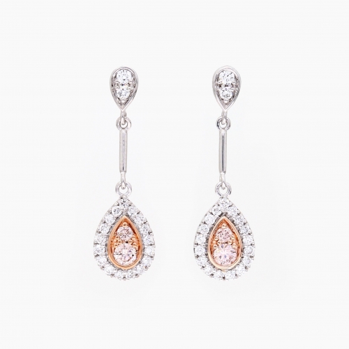 Indira Argyle light pink champagne and white diamonds drop earrings