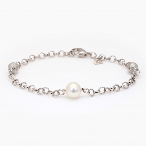 The Karri bracelet is a captivating fusion of oceanic beauty and native Australian textures. Crafted from sterling silver, this exquisite piece features a lustrous 8-9mm round freshwater pearl interspersed between sterling silver quandong-inspired beads. The harmonious blend of white, silver, and cream hues adds a touch of sophistication to any ensemble. The Karri bracelet embodies Australian charm, sure to become your favourite accessory!