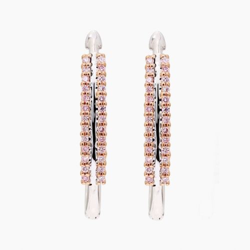 Crafted from a contrasting combination of 18 karat white and rose gold, these glittering hoop earrings are encrusted with precious treasures. Featuring 0.24 total carats of round-cut 6-7P Argyle pink diamonds, the Lyric Argyle pink diamond earrings are a luxurious celebration of premium coloured sparkle.
