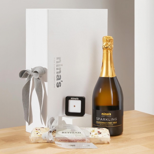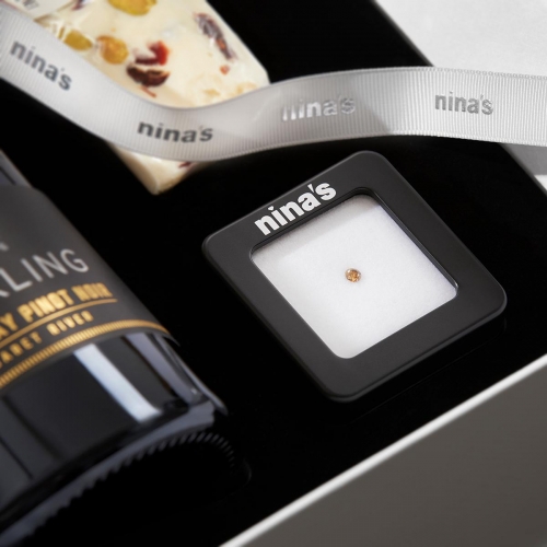 For the one who has everything, give the gift of diamonds with the Nina's Champagne Gift Box. Containing 1x bottle of Nina's Sparkling (furnished by Wills Domain), 1 x 200g block of handmade Bettenay's Nougat from Margaret River and a single canistered champagne diamond of 0.15 carat, all packaged in a premium gift box and ready to ship. This pack is also available with a diamond of your choice, including Argyle Pink Diamonds - Live chat or call us to ask us how!