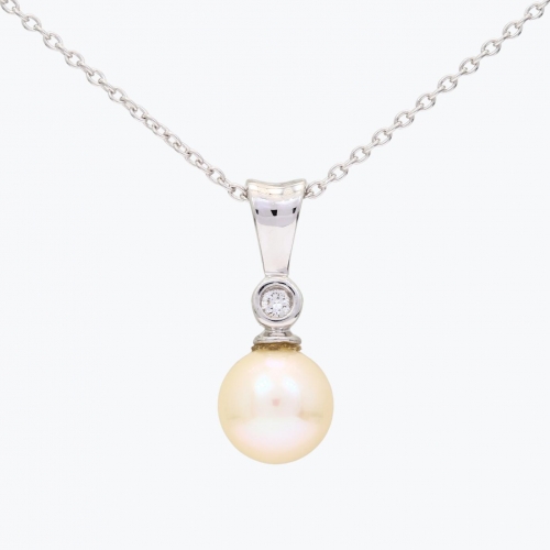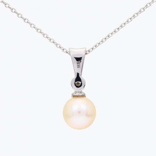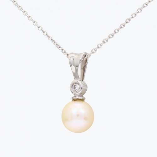 This alluring fresh water pearl necklace features a single white diamond set in sterling silver. It can be worn daily, or dress it up with matching pearl studs for a night out. 40-45cm Chain included.