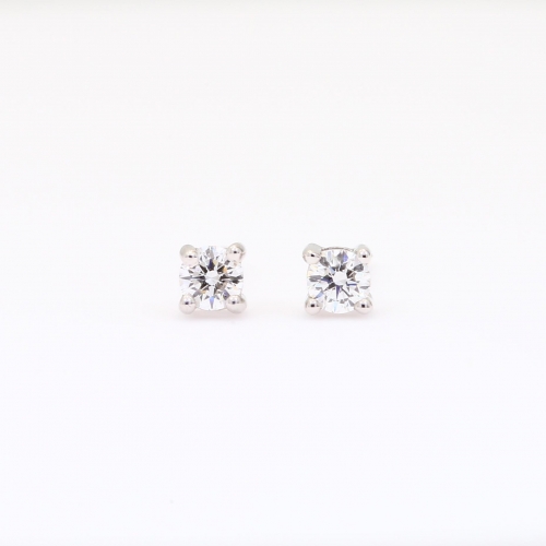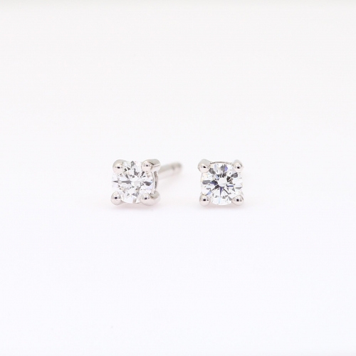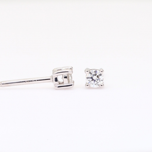 An elegant pair of classic diamond stud earrings featuring sterling silver and two white diamonds equalling 0.15 carat in size and secure butterfly clip closures.