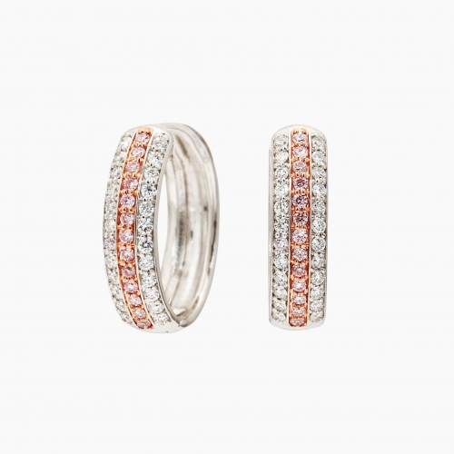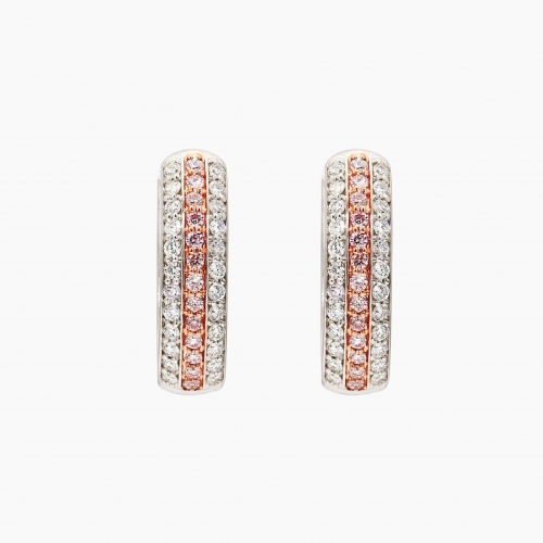 A stunning showcase of sparkle, the Ombre Argyle pink diamond huggies are each set with a feature row of 13 Lot Numbered 6-7P Argyle pinks in 9 karat rose gold settings to supercharge their pink power. Framed by a further 24 white diamonds each in 9 karat white gold to add further contrast, these diamond huggie earrings are a premium colour upgrade to a much-loved classic.