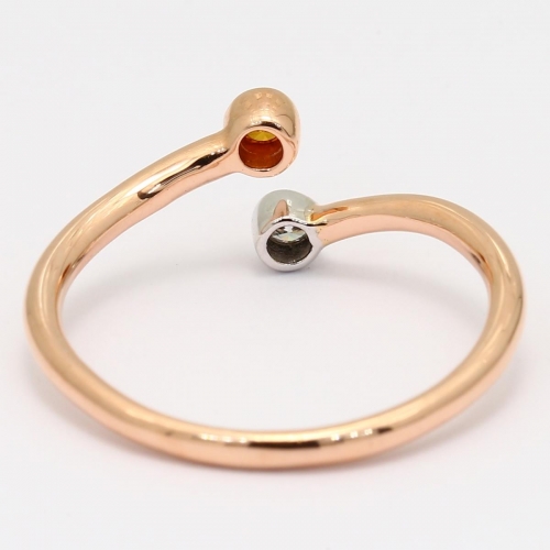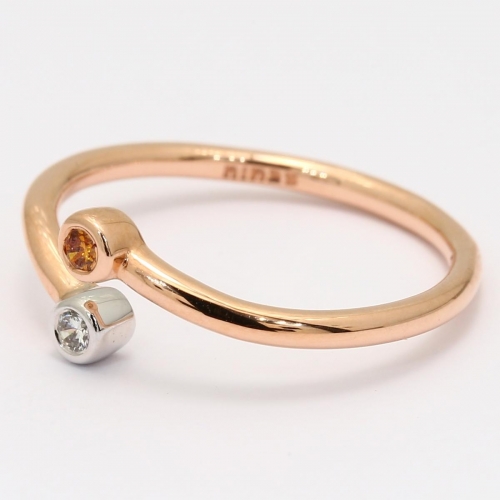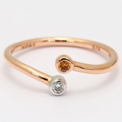 Featuring a natural, fancy-intense-orange diamond and a fine white diamond in bezel settings, this ring is crafted from 9 karat rose and white gold. The Paquin is an open-style diamond ring that's perfect for stacking, bringing a little contemporary flair to classic materials.