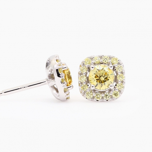 Handcrafted from 18 karat white gold, these exquisite square cluster studs are designed to celebrate colour and sparkle. At the centre of each earring lies a 0.25 carat fancy yellow diamond, chosen for its vibrant, sunshine hue. Surrounding each centre stone is a halo of 14 petite yellow diamonds, amplifying the warmth and radiance of the design. Inspired by vintage glamour and reimagined with modern elegance, the Soleia diamond earrings are a striking expression of natural-coloured diamond jewellery.