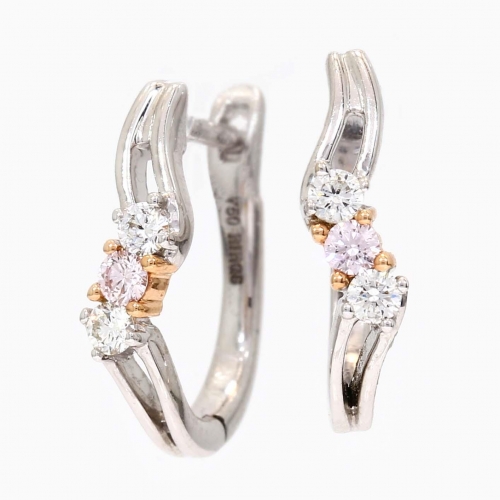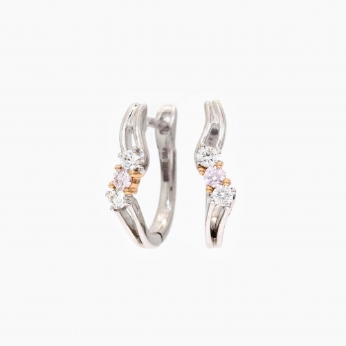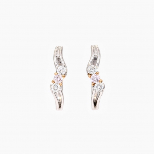 This pair of huggie hoop earrings features two stunning Argyle pink diamonds with a 7-8P/R colour grade, enhanced by four white diamonds set in a curve of 18 karat white gold with rose gold highlights. The Tiana pink diamond earrings will look gorgeous day or night.